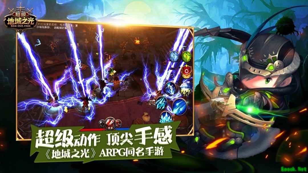 超级地城之光是韩厂与起源工作室打造的3D动作ARPG手游。有着低调华丽的暗黑画风与Q萌二头身角色,技能连招操作华丽。其史诗剧情中暗之末裔入侵,光之后裔接受召唤拯救光明城。四大职业有转职系统,转职后有新技能、新进化和更多养成乐趣。还有光之后裔专属交易所,可托管寄卖、购买、竞拍。灵魂星阵能点亮战魂羁绊,不同属性激发无限战力,还有变装与战魂相关玩法。