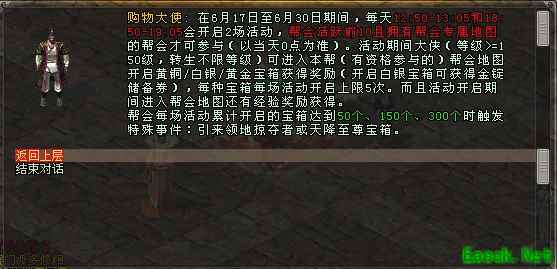 6月17日-6月30日,武林盟将于每日12:50-13:05,18:50-19:05将开启2轮帮派宝箱活动,参与活动可得金锭储备券、称号“探宝达人“、玄金矿石(特大)等珍贵好礼!武林盛夏狂欢期待您的加入!