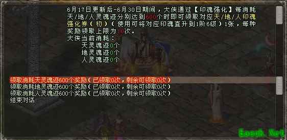 6月17日-6月30日,大侠通过印魂强化功能消耗指定数量的灵魂迹即可到购物大使处领取对应印魂直升券!大侠印魂强化快人一档,笑傲群侠!