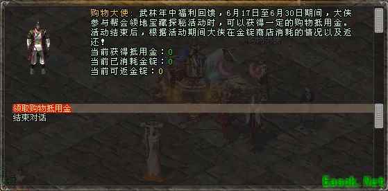 6月17日-6月30日,大侠于金锭商店(包括618狂欢商店)中消耗的金锭数量将被记录,7月1日-7月7日可于临安城-购物大使处领取购物抵用金,最高返17万金锭!请大侠共赴这难得的江湖盛宴!