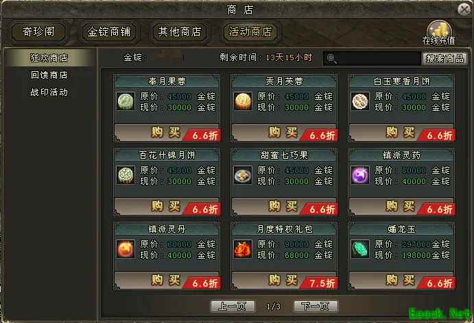 活动期间,奇珍阁-将新开618商店,福缘露、门派信物、坐骑易容令牌等珍贵道具限时折扣出售,请大侠更新后前往购买。