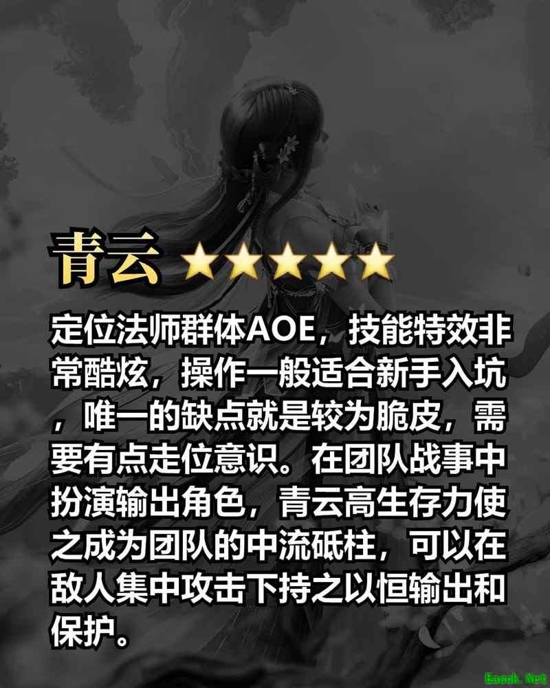 法师群体AOE定位明确,技能特效华丽炫目,操作难度适中,适合新手入门。唯一的短板是身板较脆,需具备一定走位意识。在团队作战中担任主力输出,青云拥有出色的生存能力,能在敌方集中火力下持续输出并守护队友,堪称队伍核心支柱。