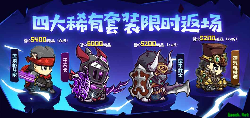 本次联动期间将会有四大稀有套装在联动期间限时返场,不仅有玩家喜爱度超高的套装【千夫长】还有个性十足的套装【流浪格斗家】,以及【蛮牛武士】、【蒸汽机械师】都将会返场!