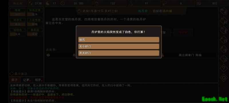 炼丹时火候控制:紫色需鼓风,白色应关小炉门,红色要开大炉门。