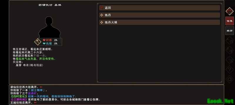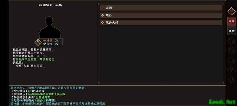 从扬州城前往炼丹房,位于百芝堂旁边,与药铺伙计吴林对话。