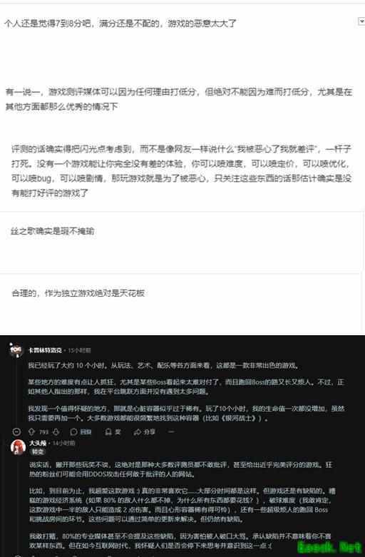 也有玩家从媒体角度提出反驳:“评测要综合游戏的闪光点,而不是像部分网友那样只凭个人挫败感打一星。没有任何游戏是完美无缺的,你可以吐槽难度、定价、优化、Bug或剧情,但如果玩游戏只是为了找不爽,那恐怕没有一款游戏能得到好评。”