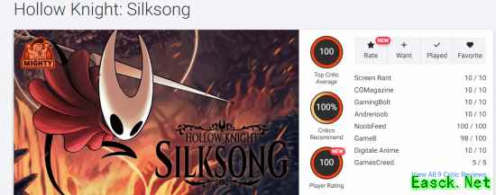 近日,于9月4日正式发售的《空洞骑士:丝之歌》媒体评分终于揭晓。截至发稿,该作在评分网站OpenCritic上罕见地斩获 满分均分 ——无论是媒体均分、推荐度,还是玩家打分,都是满分。目前网站已收录9家媒体测评。