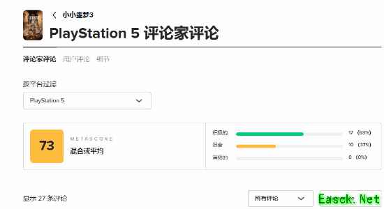 截止至发稿时,媒体评分现已全面解禁!M站收录了27条PS5平台的媒体评测,均分73分。其中17家媒体给予好评,10家媒体给予中评,好评率为63%。