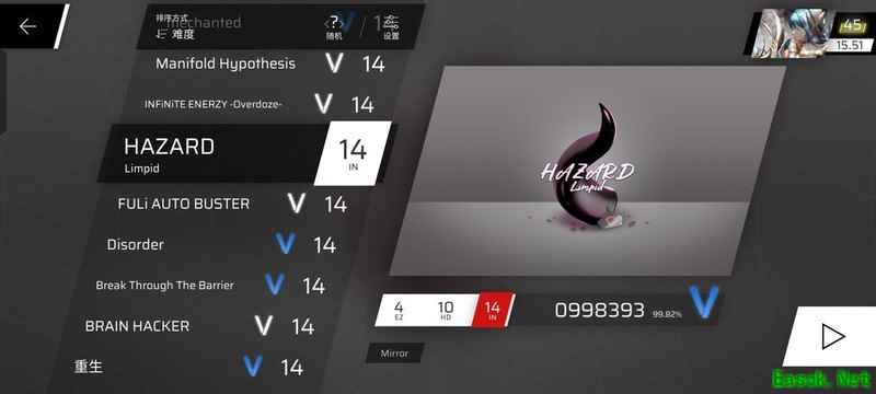 这里推荐一首HAZARD,算是14.7难度中较为简单的一首。需要注意两次双押段落结尾的爆发力,以及单指对抗连音和叠键的技巧。