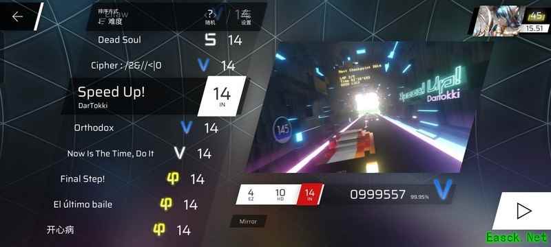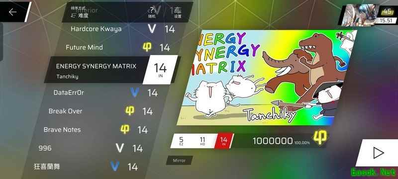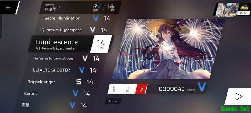 虽然谱面略显杂乱,但整体难度适中,14.8的配置还算容易上手。注意400COMBO时的红键,需合理安排手部动作。在888COMBO的爆发段尤其要小心,最后两个叠键需特别留意。