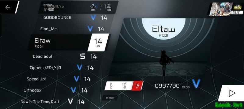 AE应该是14.9里最简单的,主要难点在于还原原家的浮现段,以及343COMBO开始的初见杀部分,要注意音押和手顺。还原原家四面下落那段也要注意手顺,最后的差速段要稳住,红键记得划。