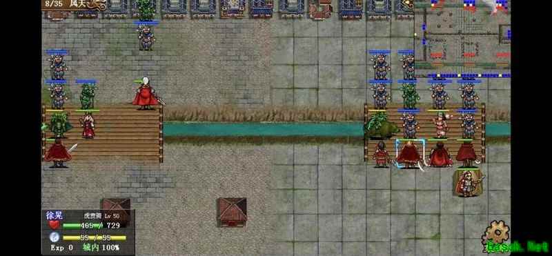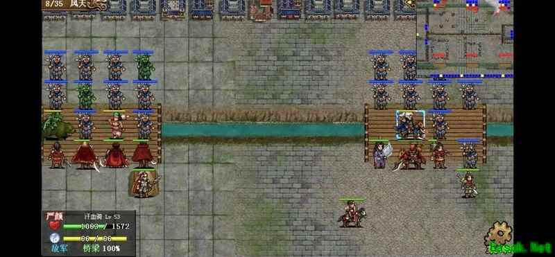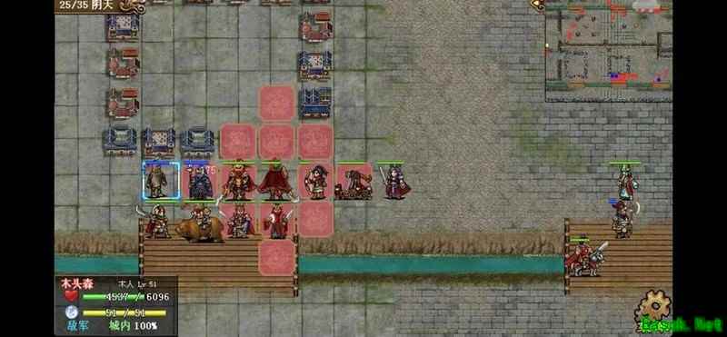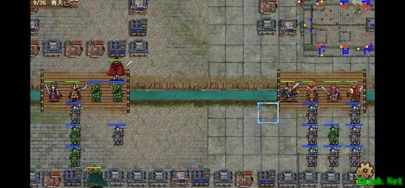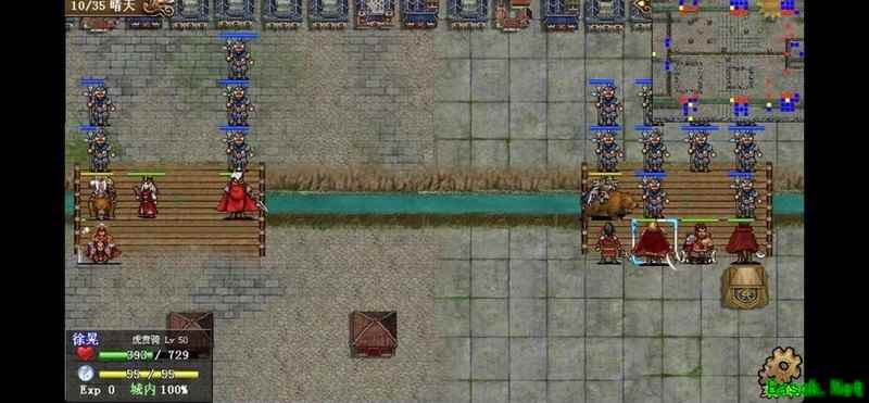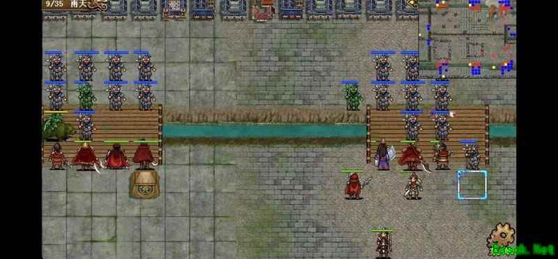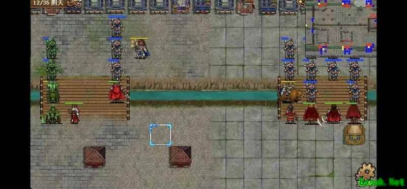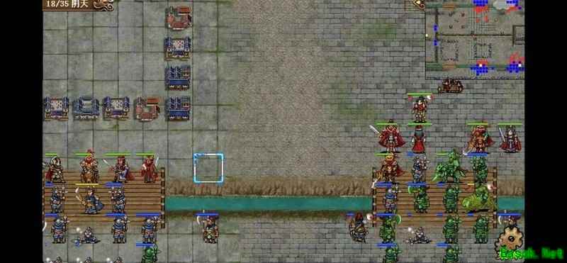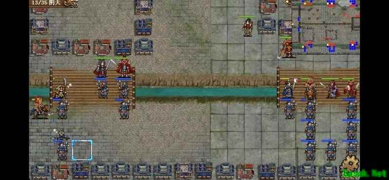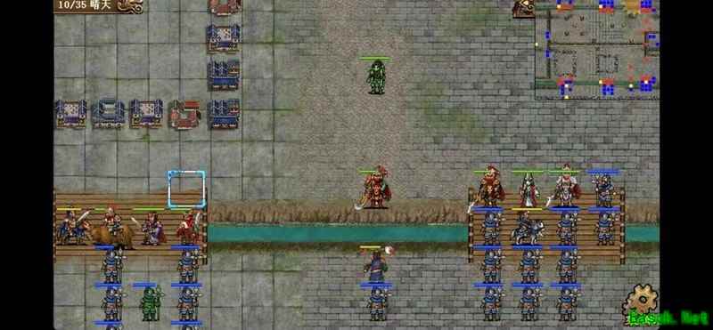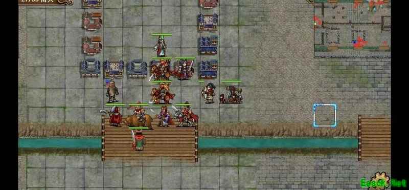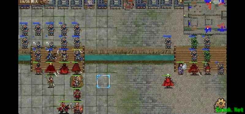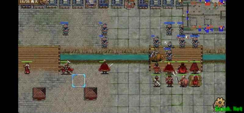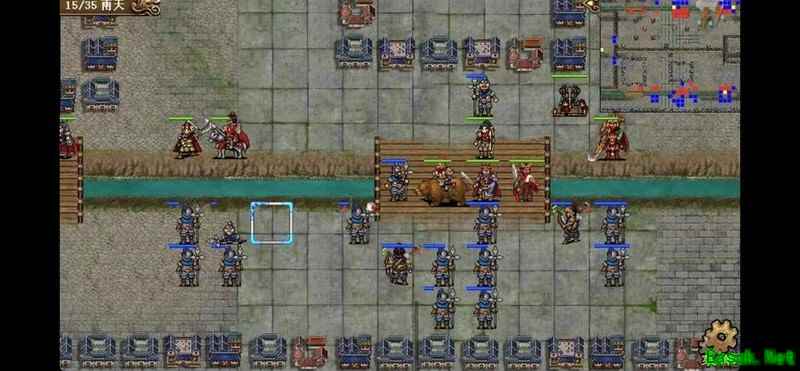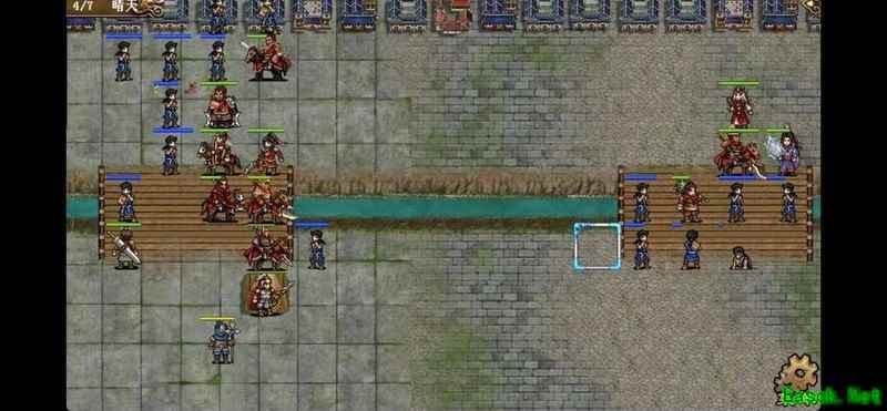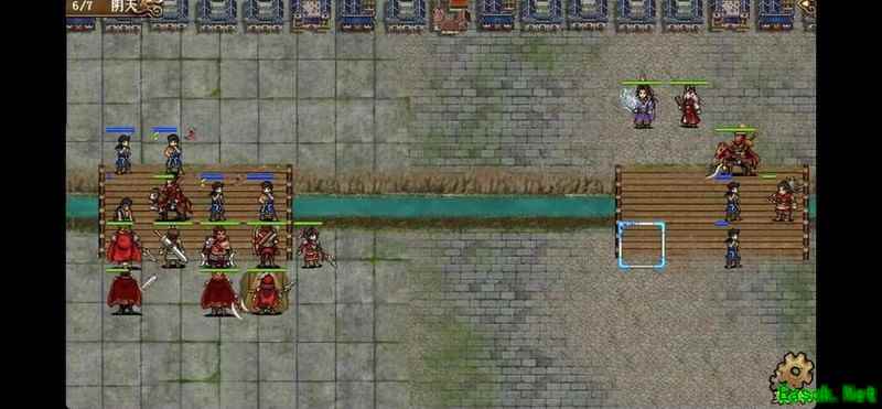 八回合时于禁强行吃下兵力后吸引鲁肃注意,文聘趁机上移削弱敌方炮车防御(非回合时反制一次,九回合再行动一次)。关羽配合赵云守住桥头,九回合起关羽与于禁集中攻击鲁肃,文聘于十回合加入围剿。击破鲁肃后部队灵活转战,隔河精准打击其余黄名武将。